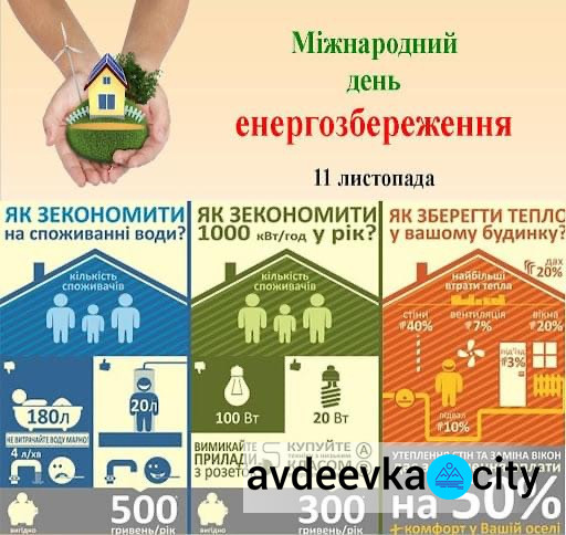 За ініціативи міжнародної екологічної мережі «Шкільний проект з використання ресурсів та енергії» (SPARE) 11 листопада оголошено Днем енергозбереження. Рішення про заснування цього свята було прийнято у квітні 2008 року на міжнародній нараді координаторів SPARE, що проходила у Казахстані. А вже в листопаді 2008-го світ відзначив перший День енергозбереження. Це свято отримало статус міжнародного, оскільки взяти участь у проекті побажали близько 20 країн, повідомляє avdeevka.city за посиланням на ВЦА.