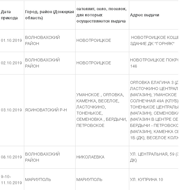«Бригады мобильной выдачи крупнейшей программы Фонда Рината Ахметова – Гуманитарного штаба, привезут помощь в Волновахский, Ясиноватский, Торецкий районы и в Мариуполь. Кроме того, стационарный пункт выдачи будет работать 9 октября в Светлодарске, а 16 и 21 октября – в Авдеевке», – рассказал Михаил Катеринчак, руководитель проектов Фонда.