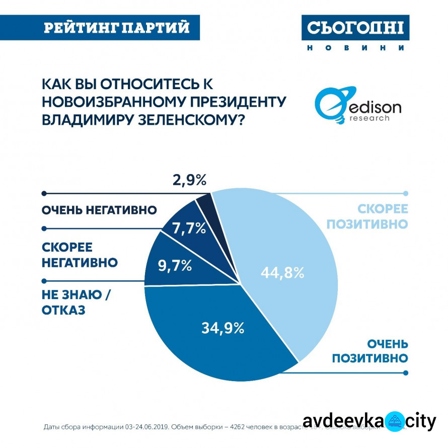79,7% украинцев положительно оценивают деятельность новоизбранного президента Украины Владимира Зеленского.