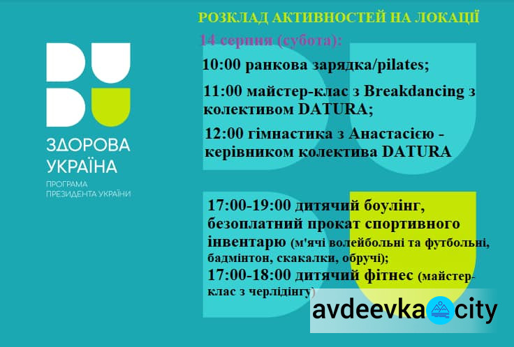 Активності на новій локації планують проводити кожні вихідні. Слідкуйте за розкладом на сторінці "Активні парки - локації здорової України"/Авдіївка та на сайті avdeevka.city.