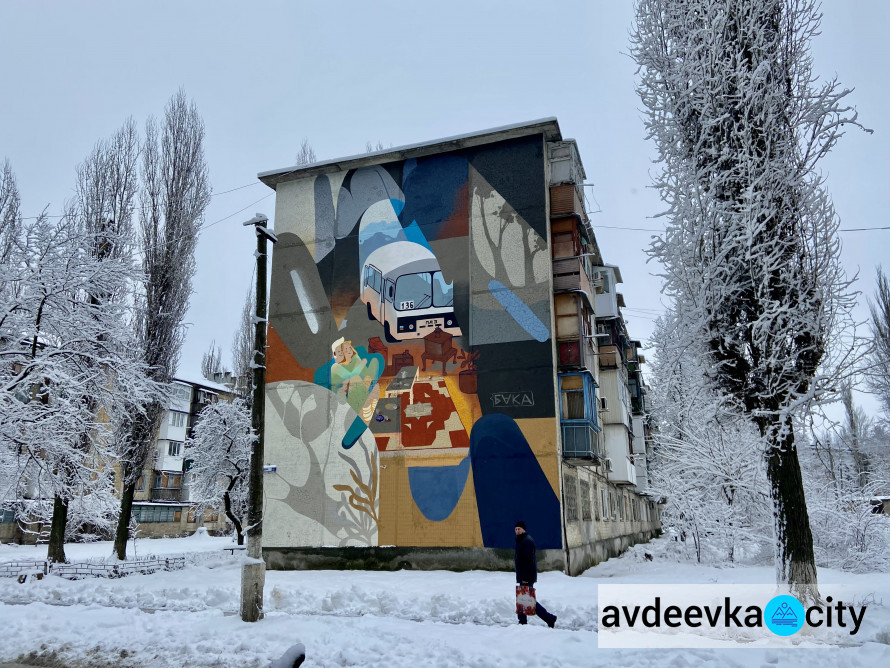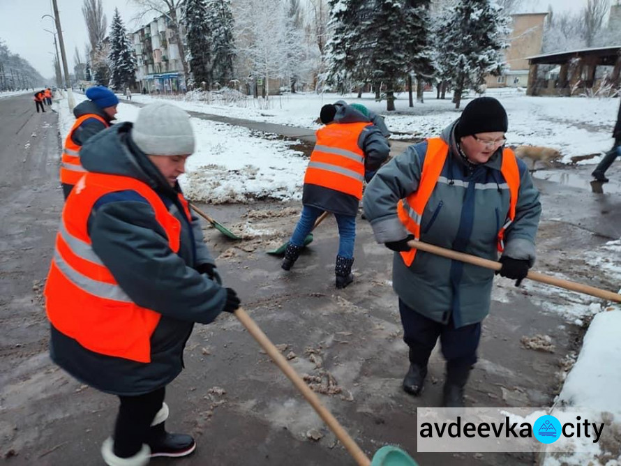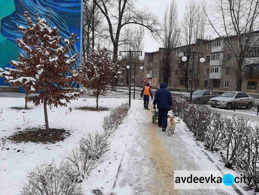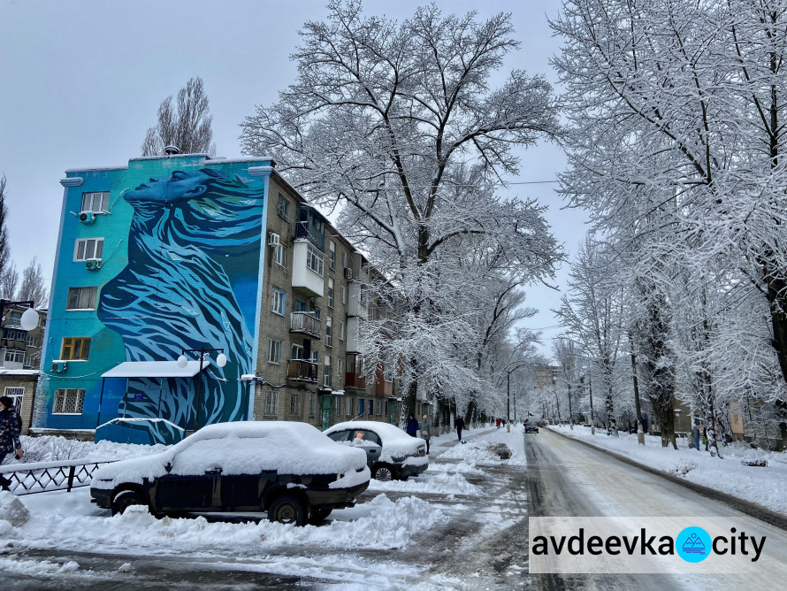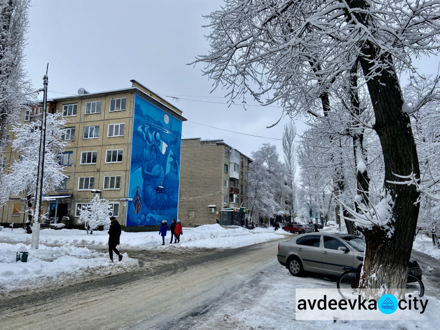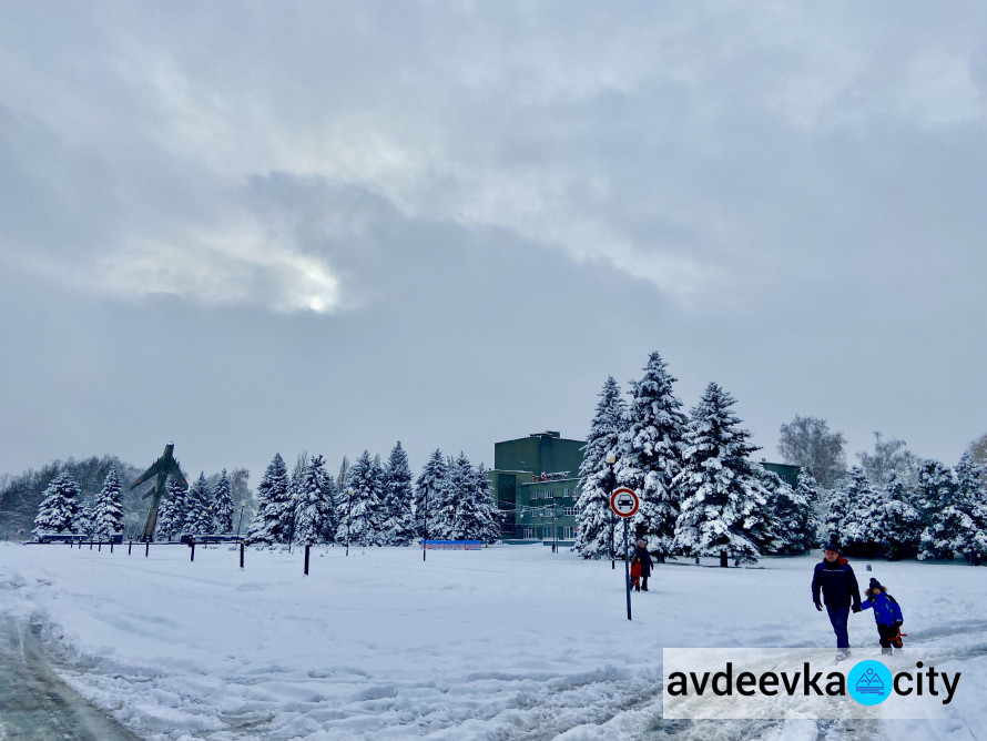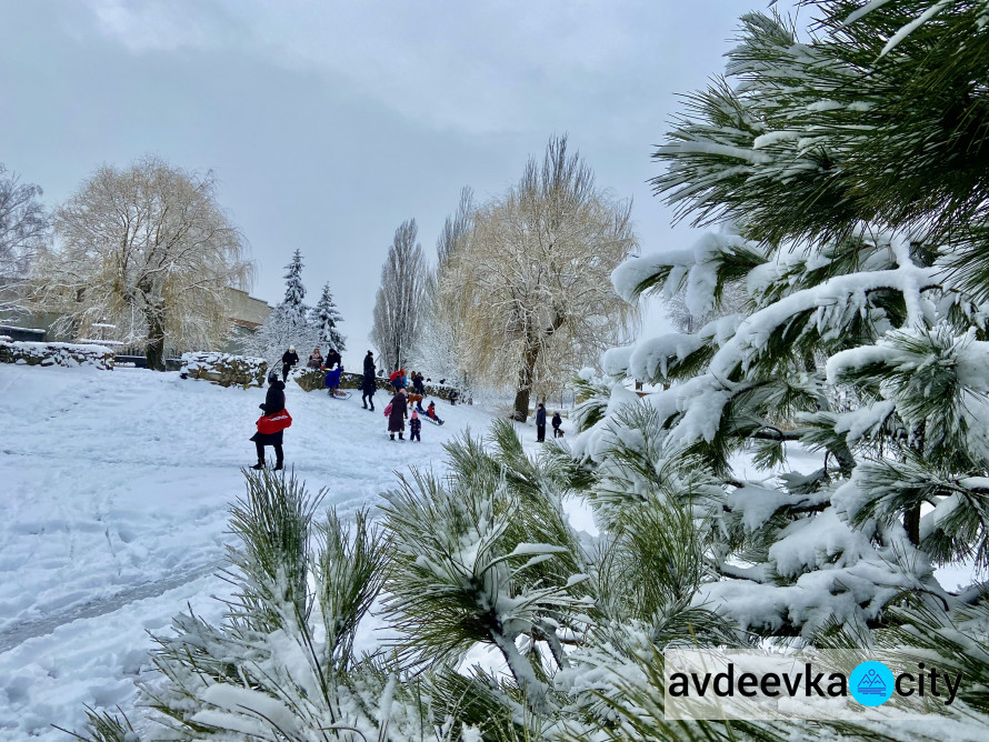 Наконец авдеевцы дождались снега. По городу кругом детвора с санками.