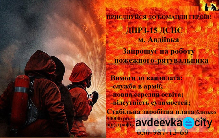 Авдеевский государственный пожарно-спасательный отряд # 15 набирает на службу пожарных-спасателей.