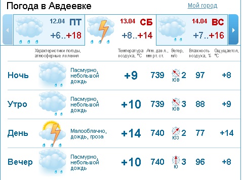 Суббота и воскресенье будут в Авдеевке пасмурными и дождливыми, сообщают синоптики.