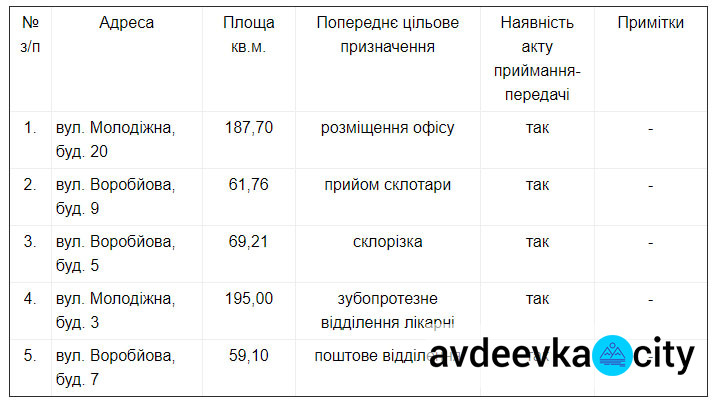 Пять помещений коммунальной собственность готова сдать в аренду военно-гражданская администрация Авдеевки. Об этом сообщается на официальном сайте ВГА.