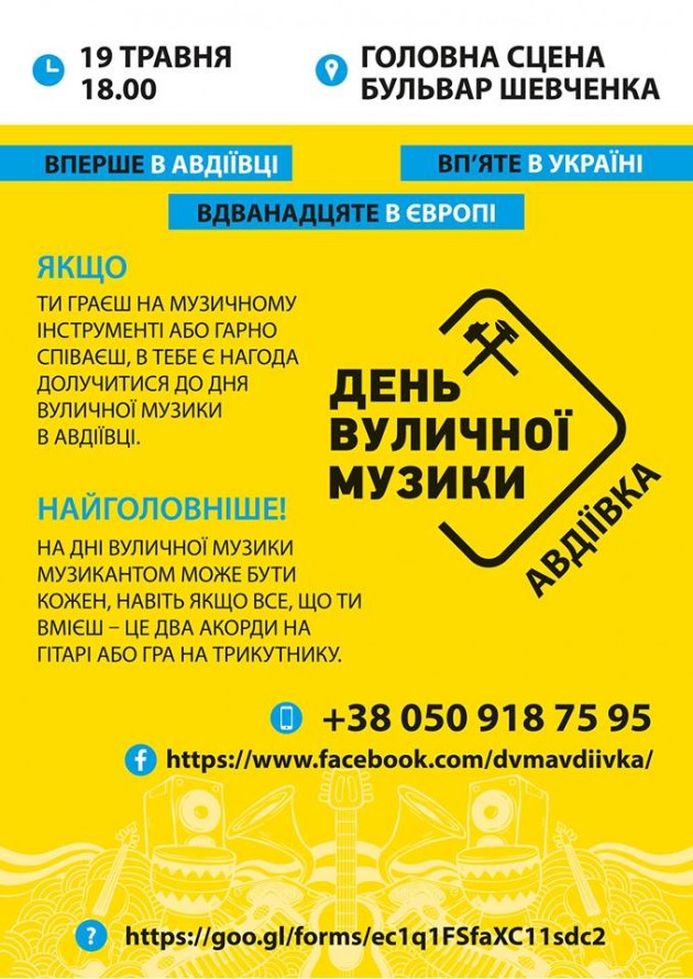 Как отмечает ИГГА, после проведения фестиваля искусств «Авдеевка ФМ», в городе удалось создать настоящее культурное пространство, которое продолжает развиваться. В частности, благодаря проведению Рок-школы, выяснилось, что в Авдеевке существует большой музыкальный потенциал: ребята готовы собираться и играть хорошую музыку. Очередным толчком для этого может стать День уличной музыки (пройдет 19 мая). Авдеевка присоединилась к нему впервые. Главной сценой станет бульвар Шевченко.
