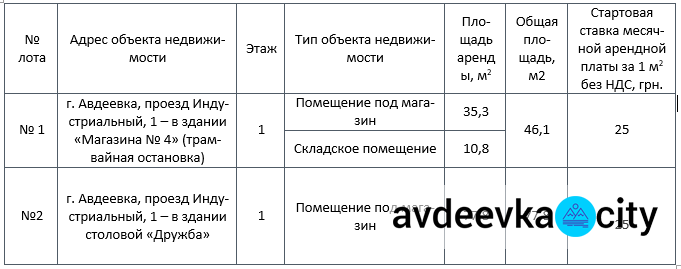 Авдеевский коксохимический завод повторно приглашает авдеевцев принять участие в конкурсе на право заключения договоров аренды нежилых помещений для осуществления торговой деятельности (без права реализации алкогольных напитков), передает AVDEEVKA.CITY.