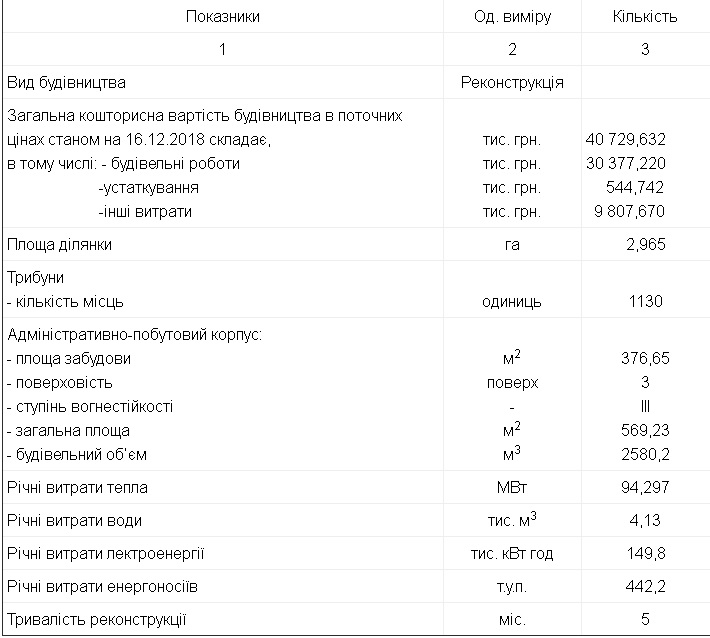 Перший заступник керівника військово-цивільної адміністрації міста Авдіївка, полковник юстиції Володимир Рекшинський зобов’язав затвердити проектно-кошторисну документацію: «Реконструкція стадіону та земельної ділянки для обслуговування стадіону, за адресою: вул. Молодіжна, 5а, м. Авдіївка, Донецької області» загальною кошторисною вартістю будівництва – 40 729,632 тис. грн. (сорок мільйонів сімсот двадцять дев’ять тисяч шістсот тридцять дві гривні) згідно експертного звіту від 20 грудня 2018 року № 05-0575-18 Філія ДП «УКРДЕРЖБУДЕКСПРТИЗА» у Донецькій області.