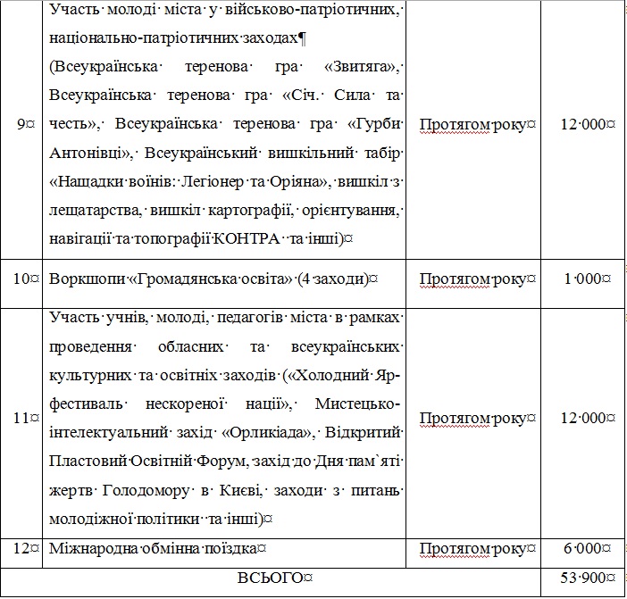 - сприяння розвитку пластового руху у навчальних закладах міста. Впровадження пластової методики у виховний процес закладів загальної середньої освіти шляхом проведення семінарів-практикумів, тренінгів, зборів, злетів для учнів та педагогів відповідальних за Всеукраїнську дитячо-юнацьку військово-патріотичну гру «Сокіл» («Джура»);