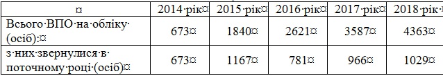 Показники кількості осіб, зареєстрованих в Єдиній інформаційній базі даних ВПО за роками (в Авдіївці):