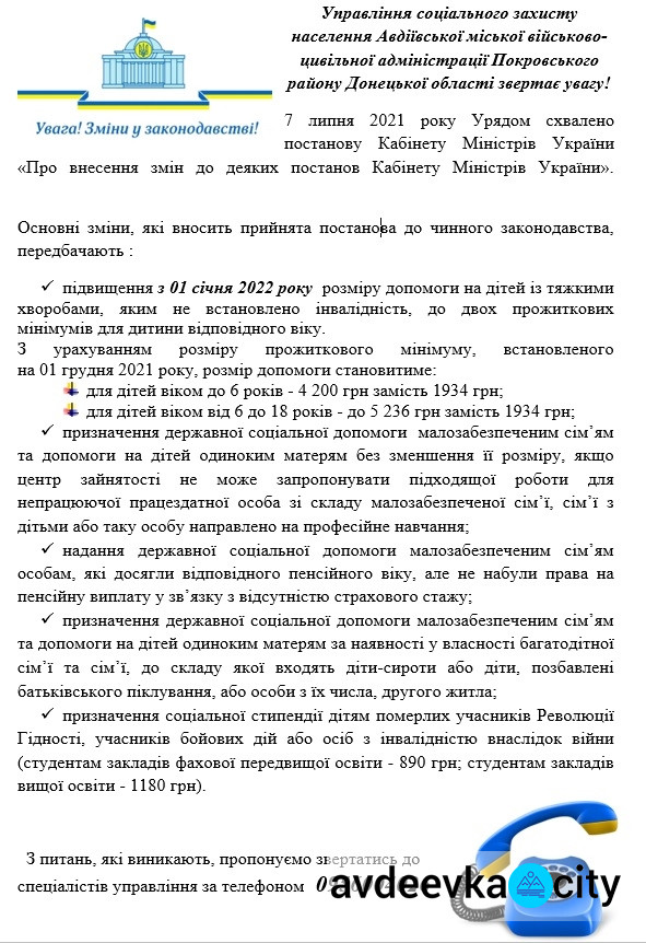 З питаннями авдіївці можуть звертатися до спеціалістів УСЗН за телефоном: 095 600-40-26.