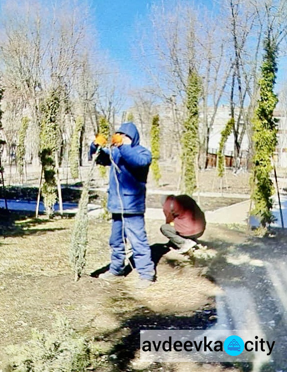 Працівники "Служби єдиного замовника" сьогодні продовжили роботу по підготовці зелених насаджень на території багатоповерхової частини Авдіївки до весняного сезону. Про це повідомляється на сторінці організації у Facebook.