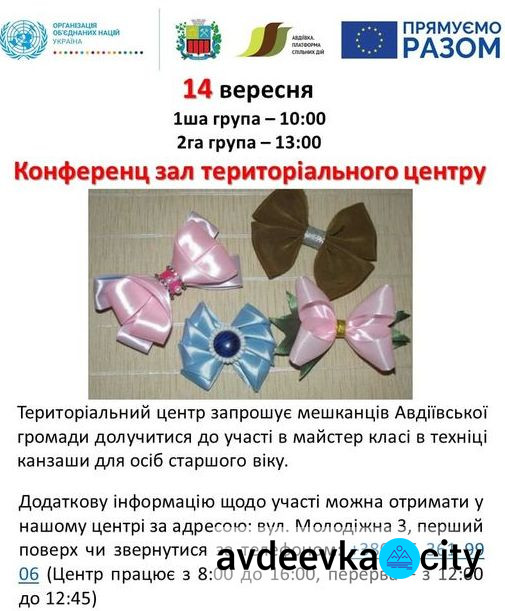 Майстер-клас в техніці канзаши для осіб старшого віку відбудеться 14 вересня у конференц-залі територіального центру о 10.00 для 1 групи, та о 13.00 - для 2 групи, повідомляє avdeevka.city.