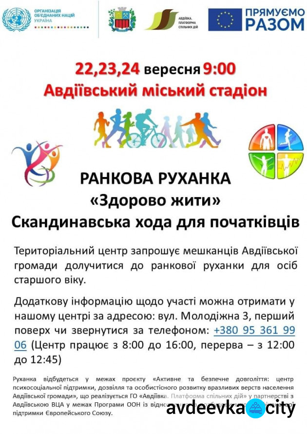 Територіальний центр запрошує мешканців Авдіївської громади старшого віку долучитися до ранкової руханки, де можна буде опанувати новий вид спорту - cкандинавську ходу, повідомляє avdeevka.city.