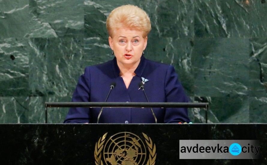Президент Литвы подчеркнула, что Россия, являясь постоянным членом Совбеза ООН, не выполняет своих обязательств по поддержанию мира и даже нарушает Устав ООН, напав на Грузию, аннексировав Крым и принимая непосредственное участие в войне на востоке Украины.