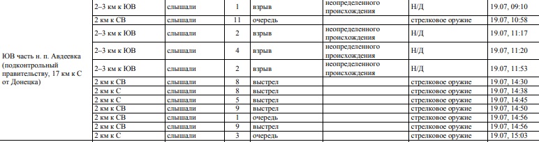 Фигурирует в сводке СММ и Авдеевка. Так, 19 июля Миссия зафиксировала вблизи нашего города один бронетранспортер. В тот же день в юго-восточной части Авдеевки в период 09:10 по 15:03 наблюдатели зафиксировали взрывы, а также одиночные выстрелы и очереди из стрелкового оружия.