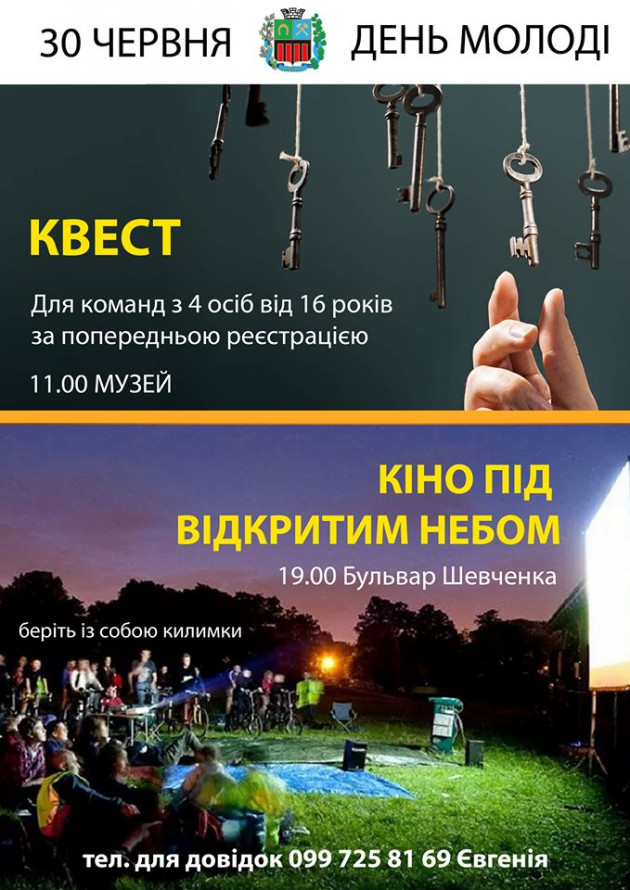 О 19:00 на бульварі Шевченка відубдеться кіноперегляд під відкритим небом. «Беріть килимки та гарний настрій. Святкуємо разом!» - закликає відділ у справах сім'ї, молоді та спорту ВЦА м.Авдіївка.