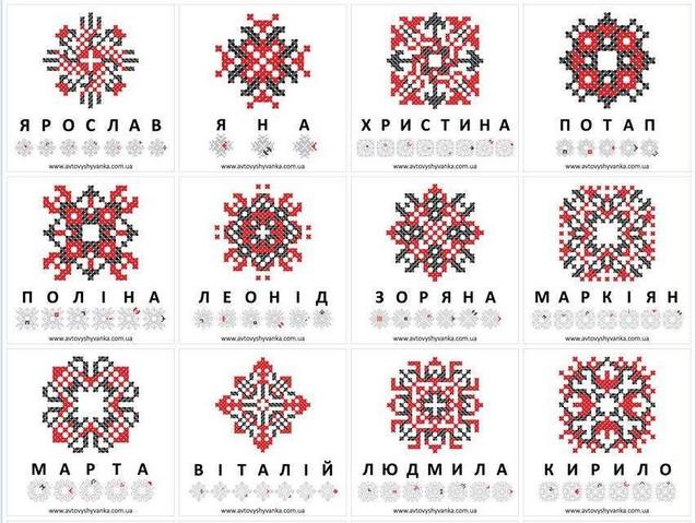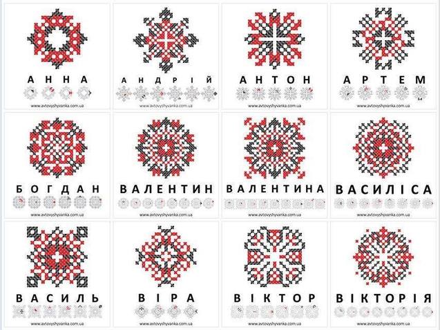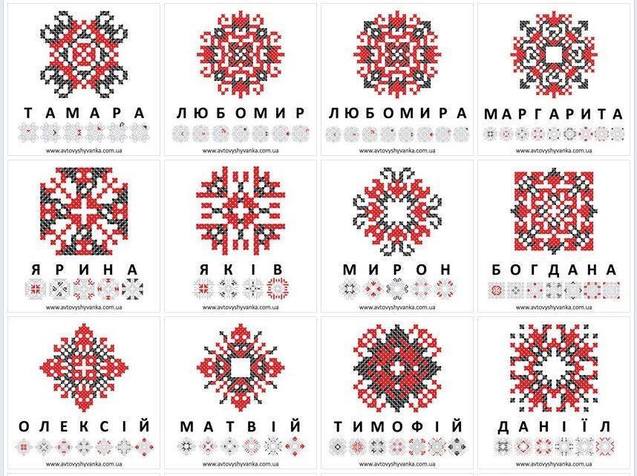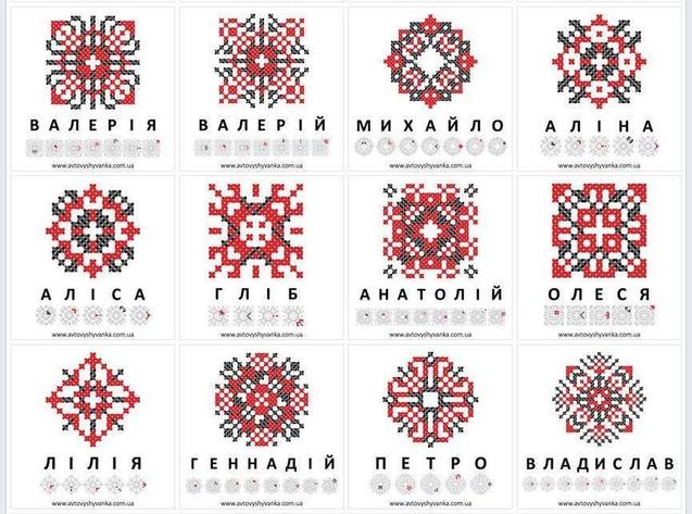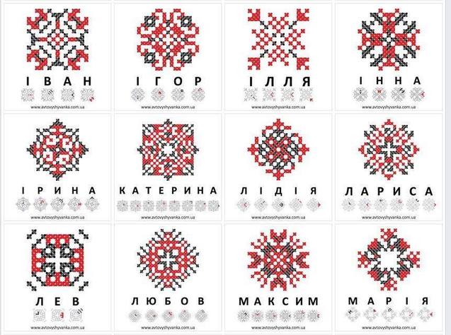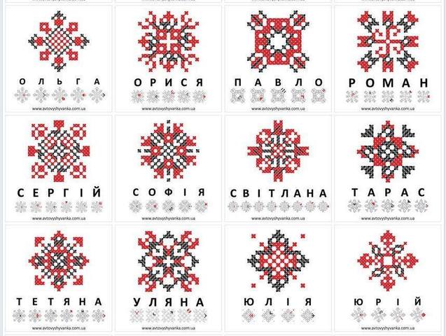 Ниже можно увидеть, как выглядят привычные распространенные имена украинцев, которые закодировали в украинской вышивке. Найди и свое имя!