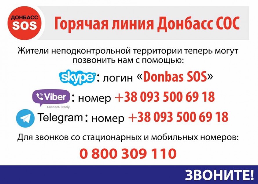 Специально для жителей неподконтрольных территорий Горячая линия Донбасс SOS готова принимать звонки через: