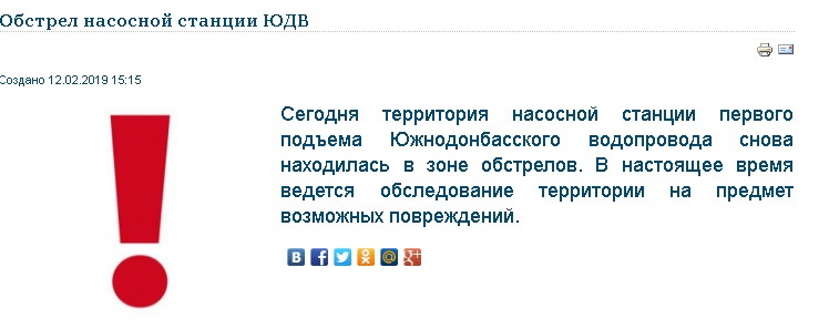 Напомним, что 7 февраля, насосная станция первого подъема ЮВД находилась в зоне обстрелов.