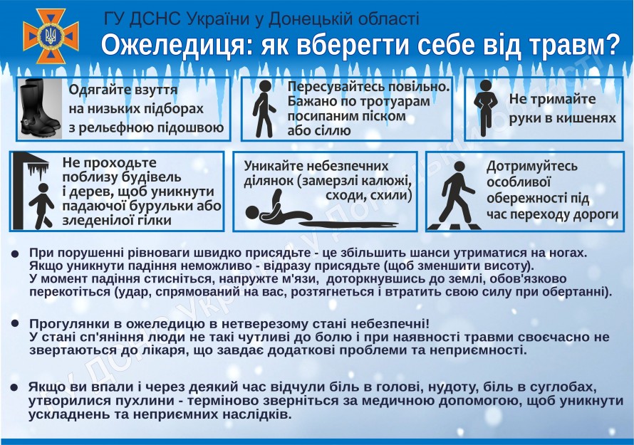 Главное управление ГСЧС Украины в Донецкой области призывает граждан соблюдать элементарные правила безопасности во время пребывания на улице.