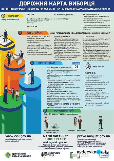Напередодні другого туру виборів 2019 Міністерство юстиції підготувало Дорожню карту виборця, яка має допомогти українцям реалізувати та захистити своє право обирати.
