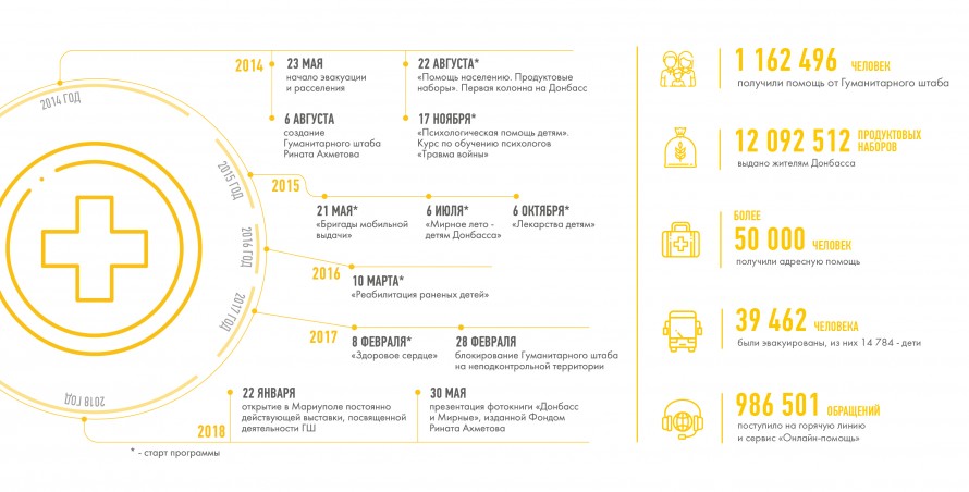 Для спасения людей, оказания максимальной помощи и поддержки Мирным, пострадавшим от вооруженного конфликта, Ринат Ахметов объединил ресурсы Фонда, всех бизнесов группы СКМ и футбольного клуба «Шахтер», пишет fdu.org.ua