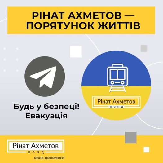 Фонд Ріната Ахметова в рамках програми «Рінат Ахметов - Порятунок життів» запустив Telegram-канал «Будь у безпеці! Евакуація».