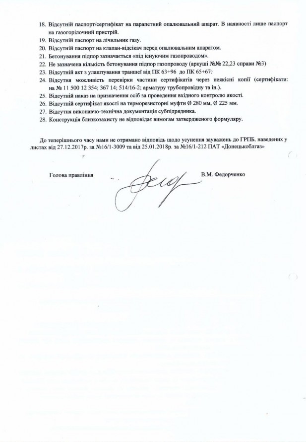 Губернатор Донецкой области Павел Жебривский 16 декабря вместе с вице-премьер-министром Геннадием Зубко посещал работы по строительству газопровода «Очеретино-Авдеевка». Тогда он заявлял, что испытания газопровода состоится до 23 декабря. А 23 декабря, после очередной инспекции на месте проведения работ газопровода «Очеретино-Авдеевка», Жебривский заявил, что это важное строительство находится на завершающей стадии.