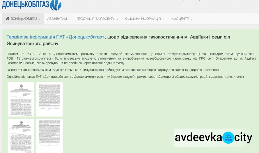 В свою очередь, Авдеевская газовая служба начала подготовку к пуску голубого топлива в жилые дома.