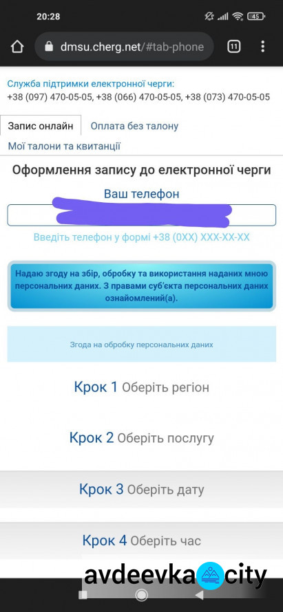 Первое, что необходимо знать каждому гражданину, это то, что в период карантина занять очередь в любое отделение миграционной службы можно в электронном виде. Авдеевка, в данном случае, не исключение. Внимание! Талон в электронную очередь дает гражданину право приоритетного облуживания, т.е. даже если в живой очереди в этот момент будут стоять люди, владельцы талонов на определенное время проходят без очереди!