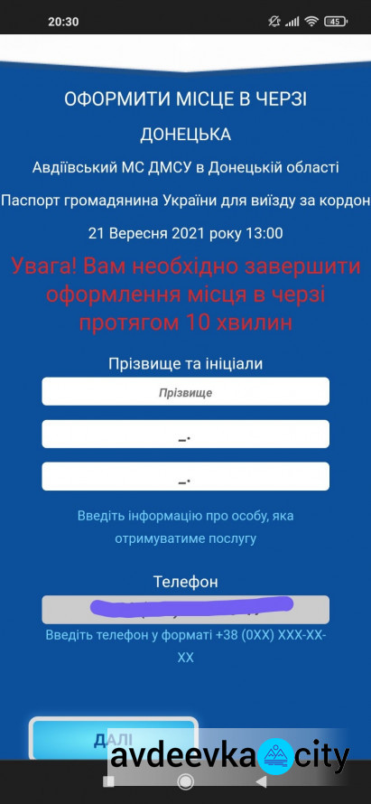 Следующим шагом завершаете оформление места в электронной очереди, введя свои данные.