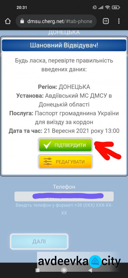 Вас просят проверить правильность заполненной информации, после чего вы нажимаете «Подтвердить».