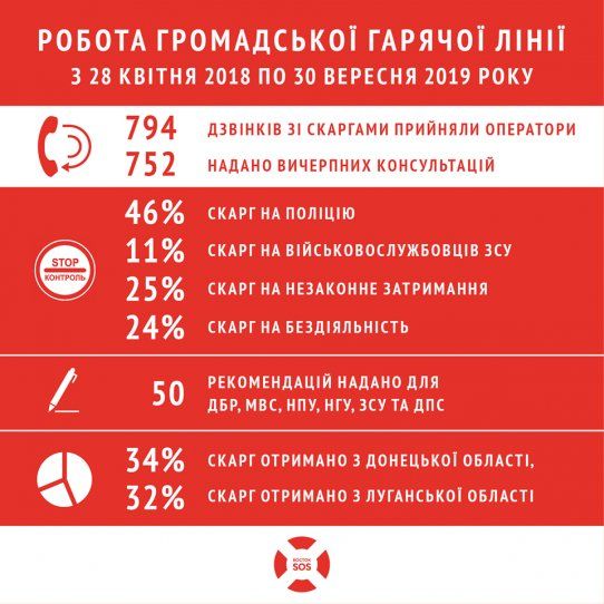 Как сообщает пресс-служба благотворительного фонда «Восток-SOS», линия начала работу 1 апреля 2018 года. Правозащитники представили отчет работы за период с 28 апреля 2018 года до 30 сентября 2019 года: