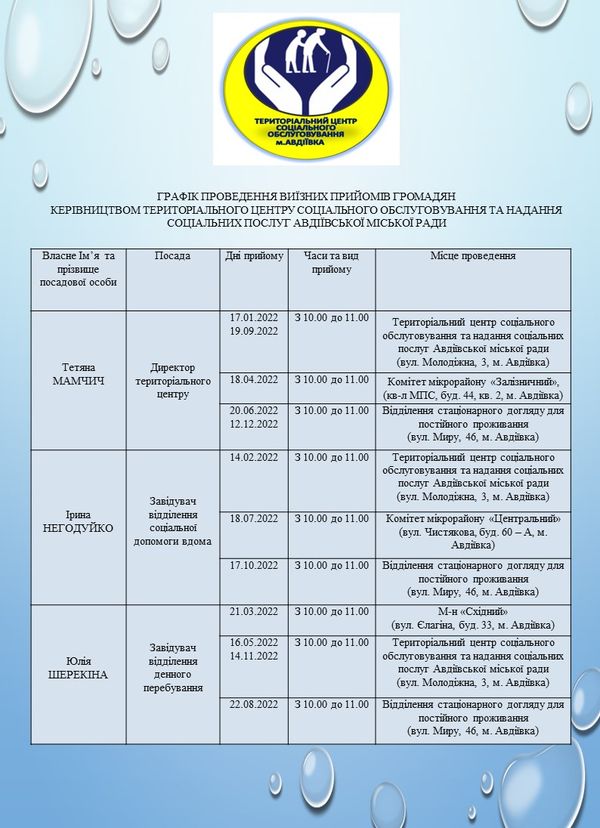 Територіальний центр соціального обслуговування і надання соціальних послуг оприлюднив графік проведення виїздних прийомів громадян керівництвом установ