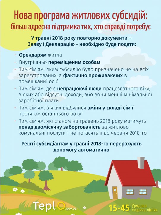 В Украине с 1 мая действует новая программа жилищных субсидий. В связи с этим, некоторым субсидиантам придется подать документы на переоформление субсидии. И не факт, что им удастся ее получить.