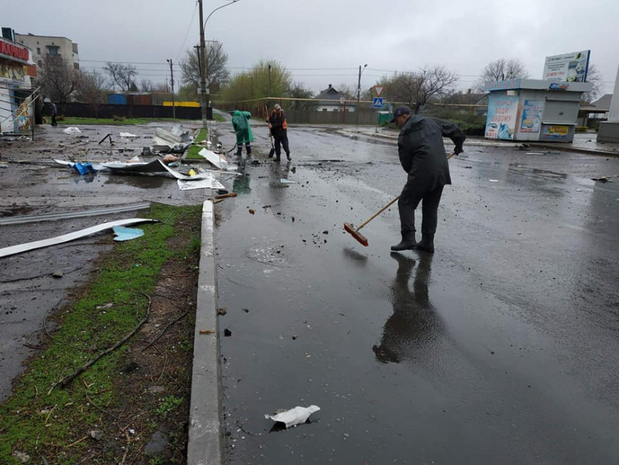 Працівники комунального підприємства "Служба єдиного замовника" приступили до прибирання території міста, яке знову потрапило під обстріли артилерії ворога.