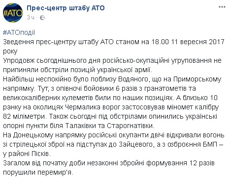 Пресс-офицер 72-й ОМБр ВСУ Елена Мокренчук, комментируя обстрелы, которые происходят, несмотря на т.н. «школьное перемирие», отмечает: «Это уже привычный процесс. Мы понимаем, что без этого не обойдется. Ну а когда выехала «бэха» (БМП), обстреляла нас, когда снова начались минометные обстрелы - мы понимаем, что от перемирия не осталось ничего».
