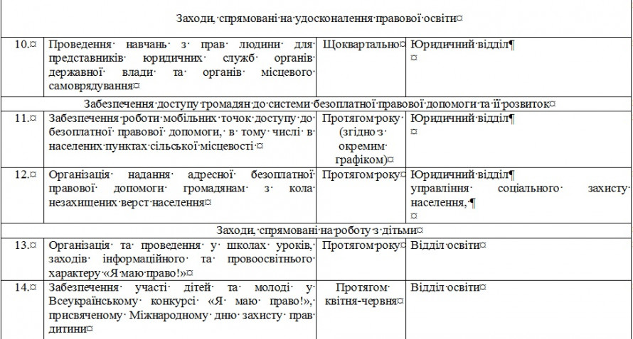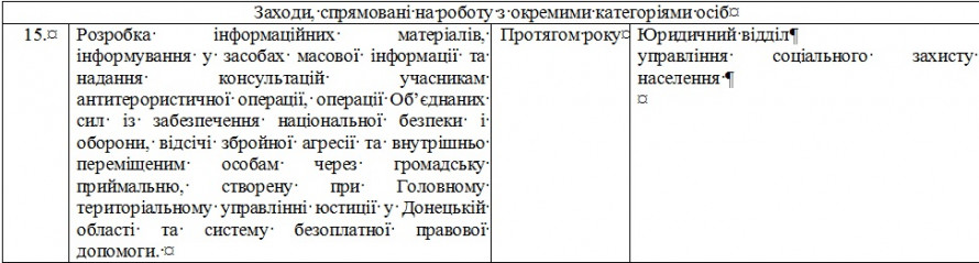 Керівник військово-цивільної адміністрації міста Авдіївка Павло Малихін зобов’язав структурні підрозділи ВЦА забезпечити виконання Місцевого плану заходів (наводимо його нижче), а також взаємодію та інформування юридичного відділу ВЦА що до цього виконання щокварталу до 01 числа місяця, наступного за звітним.