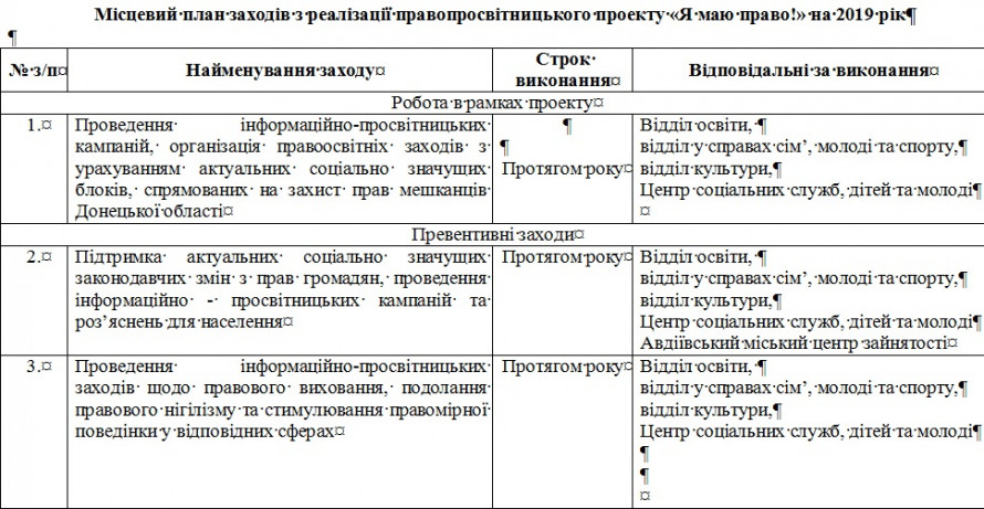 В Авдіївці затвердили Місцевий план заходів з реалізації правопросвітницького проекту «Я маю право!» на 2019 рік.