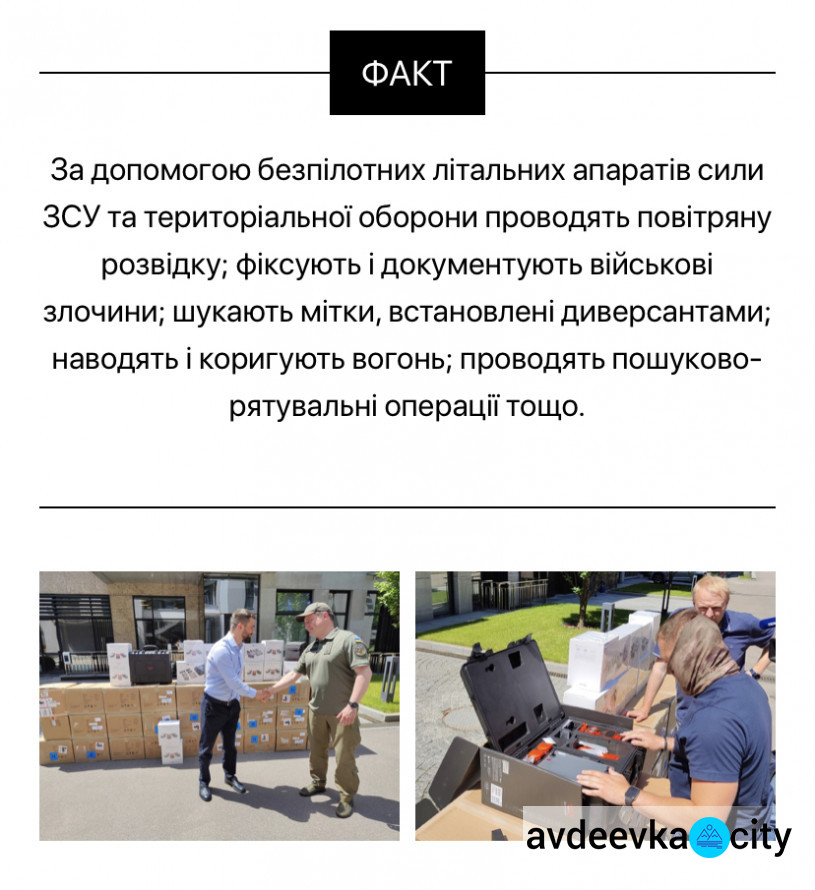 – Якщо раніше військові просили бронежилети чи каски, то тепер просять дрони. Для наших військових не підходять безпілотники з радіусом дії менш як 10 км, тому ми шукаємо БПЛА, котрі можуть літати на більші відстані. Ця партія – дрони Autel, що мають 24-кілометровий радіус дії та висоту польоту до 1 км. Зараз у Європі є певний дефіцит саме цих дронів, тому ми везли їх зі США. Це позиція акціонера Групи Метінвест, Ріната Ахметова, – будь-яким способом допомагати армії. Ми сподіваємось що ці «очі» допоможуть нашим розвідникам вести боротьбу з ворогом на захопленій території, – зауважив Олександр ВОДОВІЗ, керівник проєктного офісу генерального директора Групи Метінвест.