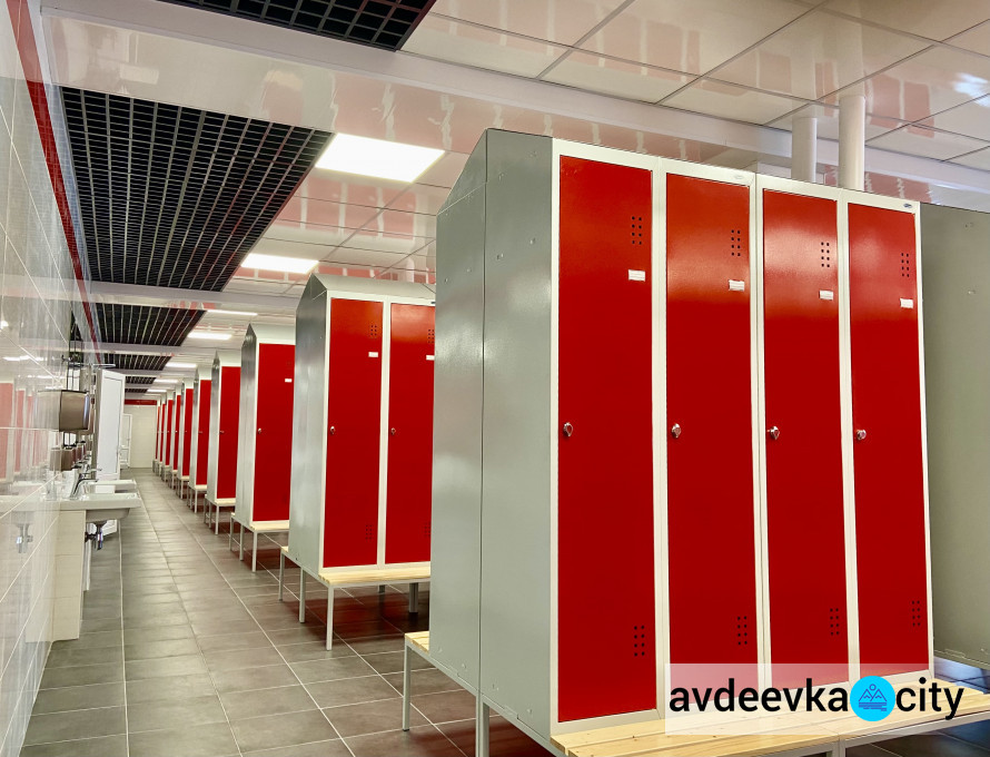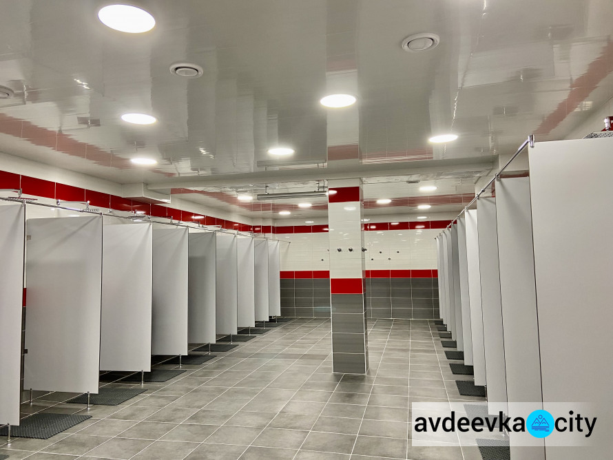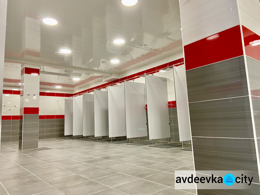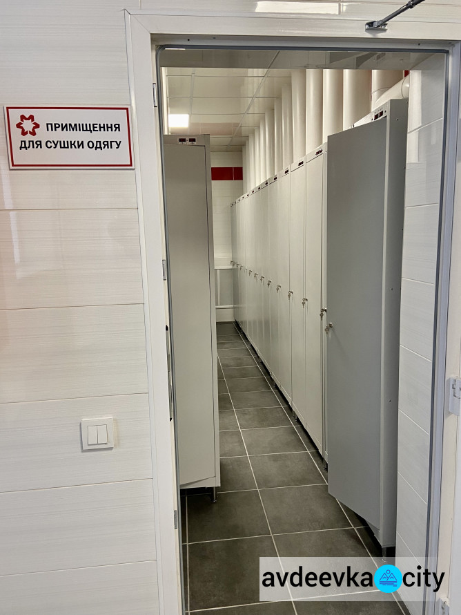 Установлено около 140 LED светильников основного освещения и около 50 – аварийного, в случае непредвиденного отключения электроснабжения. В обновленных помещениях, рассчитанных на 300 человек, для удобства оборудованы лавочки, персональные, снабженные замками шкафчики для рабочей и чистой одежды.