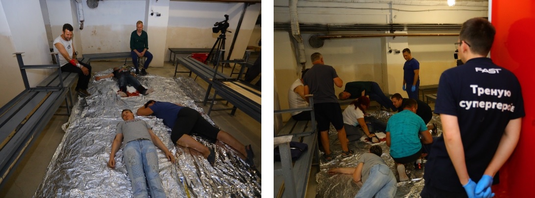 Також на тренінгах проводиться симуляція, де співробітники Метінвесту вчаться надавати медичну допомогу умовно постраждалим із мінно-вибуховими травмами. Це дієвий спосіб вивести людей із зони комфорту, подивитись, як вони реагують – чи дотримуються алгоритму надання допомоги, чи правильно виконують необхідні дії.