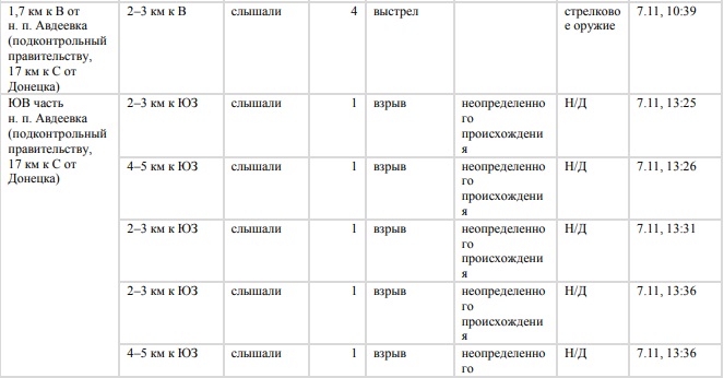 Согласно данным Специальной мониторинговой миссии ОБСЕ в Украине, в период с вечера 6 по вечер 7 ноября, у города Авдеевка происходили многочисленные нарушения режима прекращения огня (НРПО). Также резко увеличилось количество взрывов по всей Донетчине.