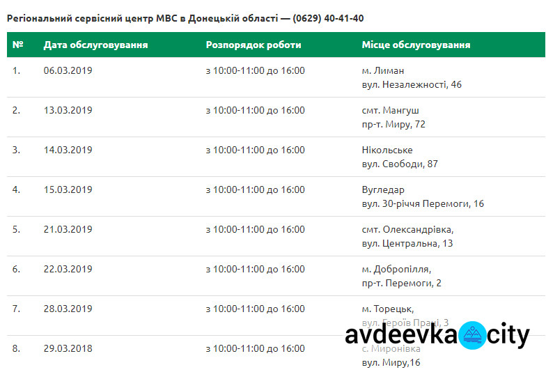 Мобильный сервисный центр МВД в марте посетит восемь населенных пунктов Донецкой области. Об этом свидетельствует обнародованный график.