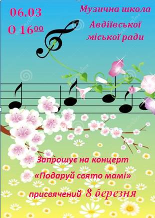 Сегодня, 6 марта, в музыкальной школе Авдеевки пойдет концерт, посвященный Международному женскому дню 8 марта.