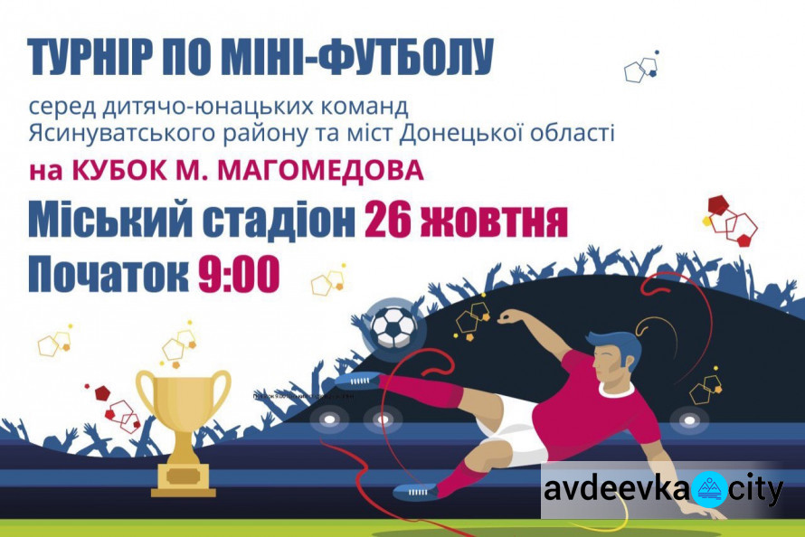 26 жовтня в Авдіївці пройде турнір по міні-футболу серед дитячо-юнацьких команд Ясинуватського ройону та міст Донеччини на кубок ви. Муси Магомедова.