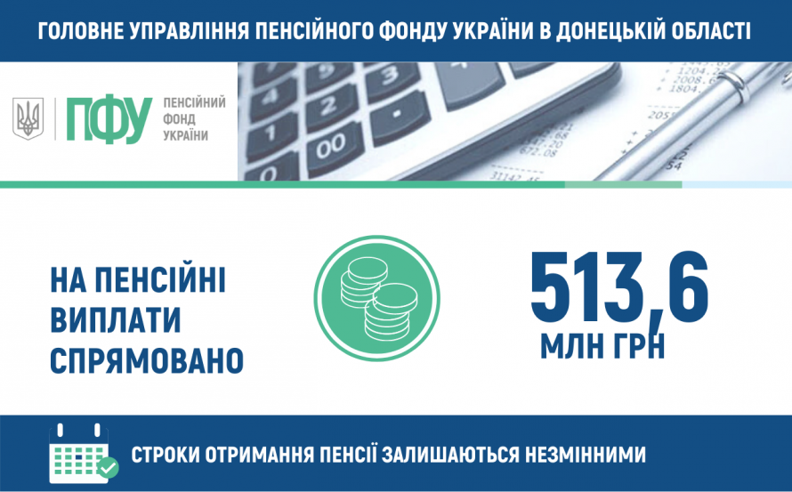 На пенсійні виплати спрямовано 513,6 млн грн.