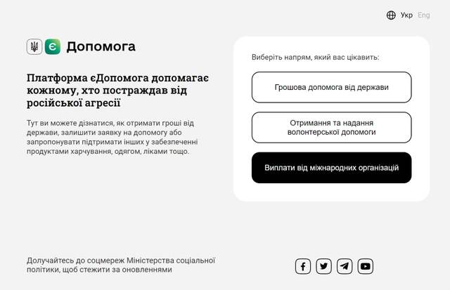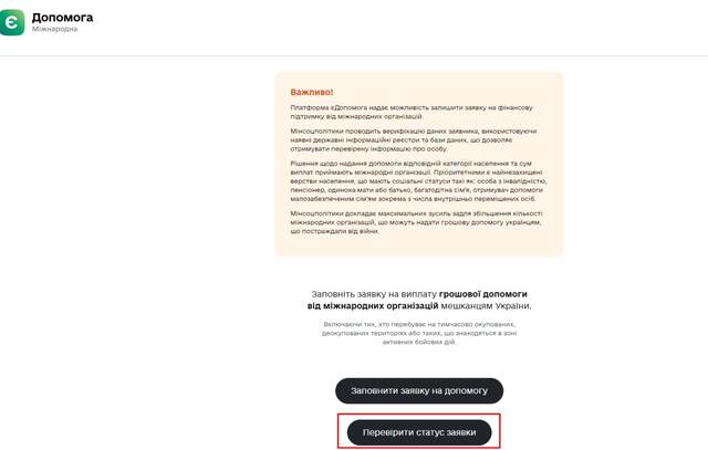 Як перевірити статус заявки: перейдіть на платформу єДопомога та оберіть категорію "Виплати від міжнародних організацій".
