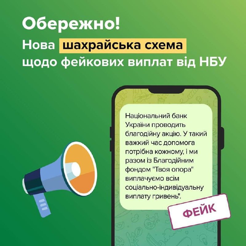 У соцмережах з’являються повідомлення, в яких шахраї стверджують, що Національний банк України нібито проводить благодійну акцію разом із фондом «Твоя опора» - всім українцям виплачується «соціально-індивідуальна виплата». Ця інформація є фейковою. Про це повідомили у Державній службі спеціального зв’язку та захисту інформації України.