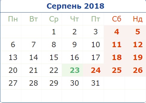 Однако если в июле это были лишь официальные выходные, то есть по субботам и воскресеньям, то в августе, помимо них, ожидается еще один государственный выходной по случаю празднования важнейшего для страны праздника – Дня Независимости Украины. А это значит, что в отличие от июля в конце августа украинцы будут иметь длинный уик-энд - с 24-го по 26-е число.